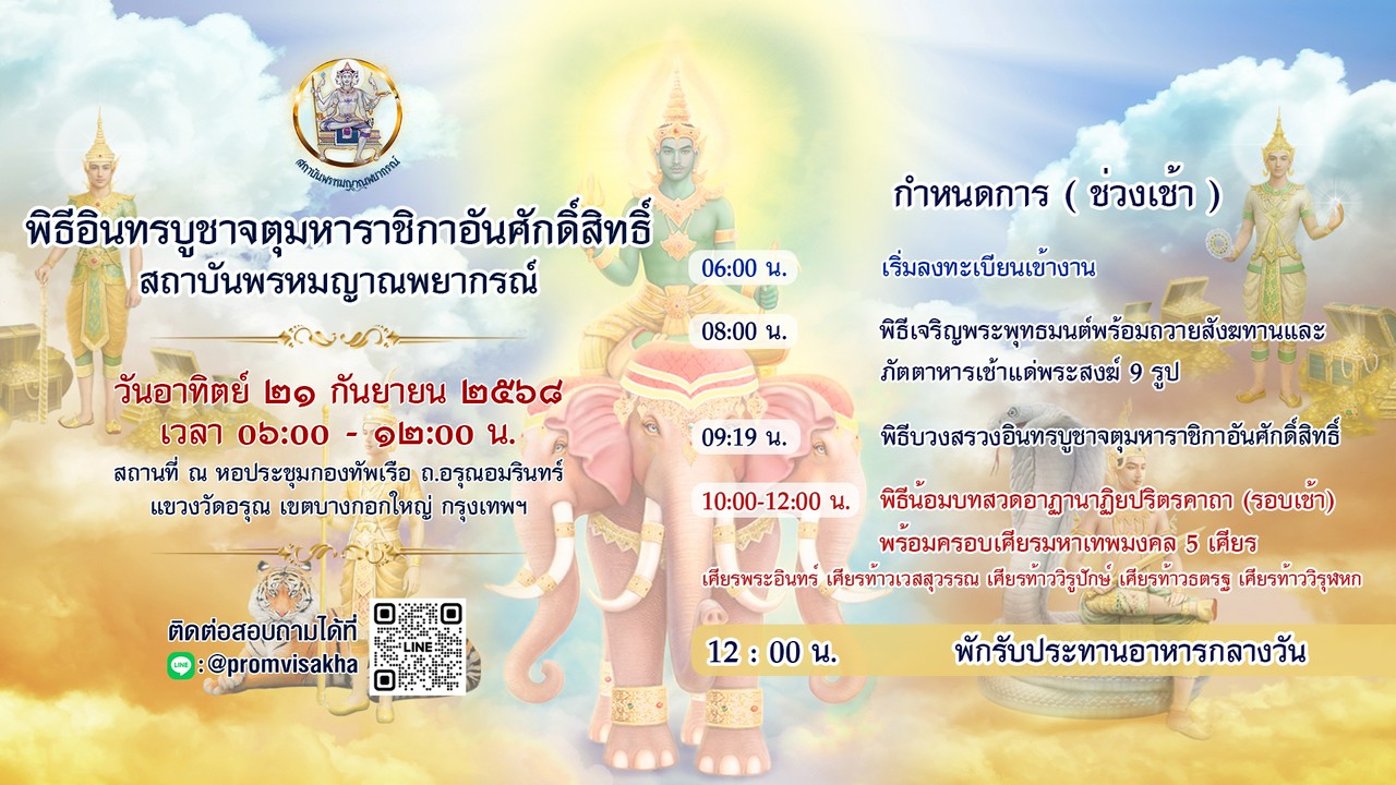 1.“อินทรบูชาจตุมหาราชิกาอันศักดิ์สิทธิ์” โดย สถาบันพรหมญาณพยากรณ์