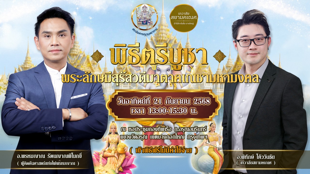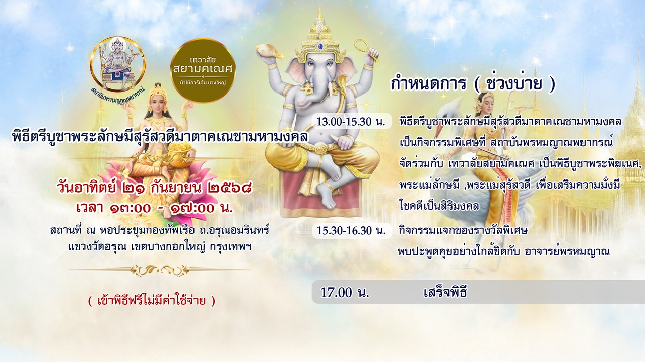 และ พิธีตรีบูชา พระลักษมี–สุรัสวดี–มาตาคเณชามหามงคล จัดโดย สถาบันพรหมญาณพยากรณ์ ร่วมกับ เทวลัยสยามคเณศ